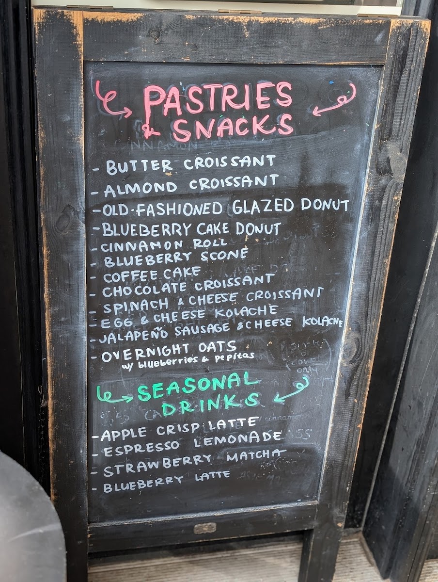 - Light Bites and Pastries: Gelato and sweet and savory pastries including cinnamon rolls, muffins, and Klobasnek.